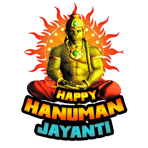 Lord Hanuman in a meditative pose with a fiery halo, wishing 'Happy Hanuman Jayanti' for the auspicious festival.