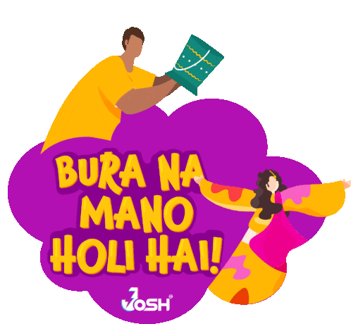 Celebrate Holi with this vibrant sticker featuring people playing with colors and the festive phrase 'Bura Na Mano Holi Hai!'