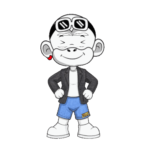 a cartoon character is wearing a jacket and shorts with the word zhou on them