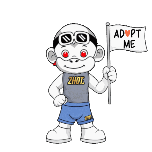 a cartoon monkey holding a flag that says adopt me