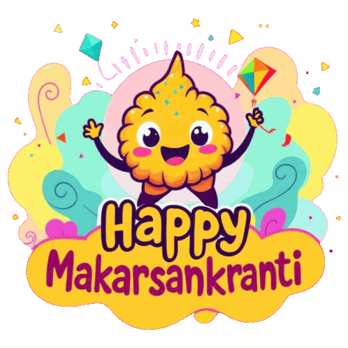 a happy makar sankranti greeting card with a cookie holding a kite