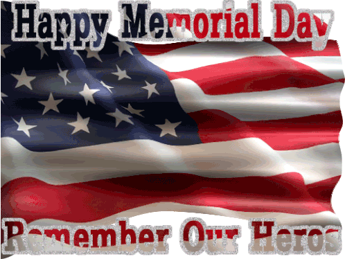 Celebrate Memorial Day with this animated sticker featuring a waving American flag and the message 'Remember Our Heroes'.