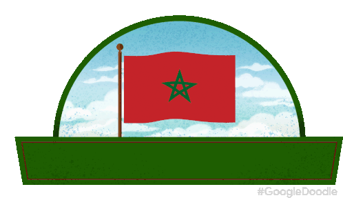 Celebrate Morocco's Independence Day with this vibrant Google Doodle featuring the Moroccan flag.