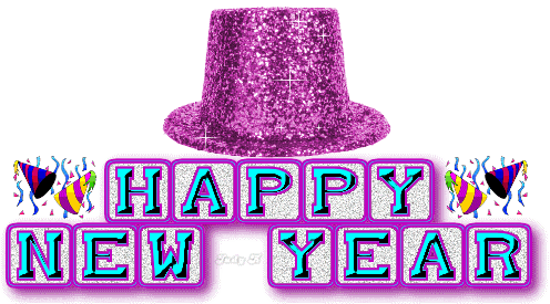 A sparkling purple top hat with 'Happy New Year' text, perfect for season's greetings and holiday wishes.