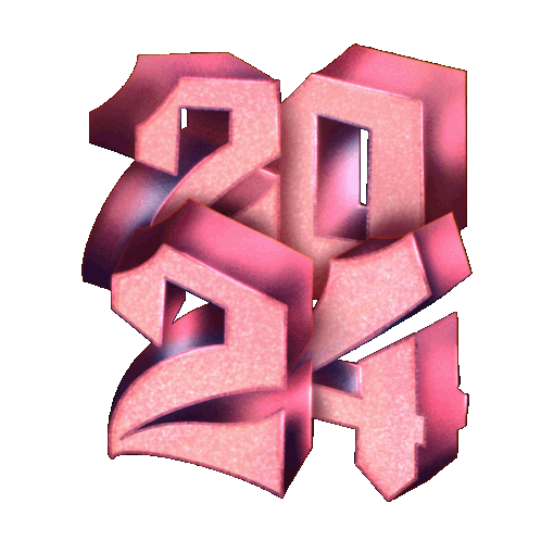 Sparkling pink 3D numbers '2024' for a Happy New Year celebration, featuring a glittery effect.