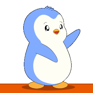 A cute blue and white Pudgy penguin waves, then welcomes the year 2025 with a 'WELCOME 2025' message.