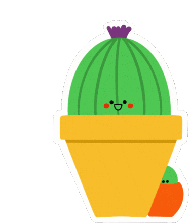A cheerful green cactus character with a yellow flower dances excitedly, perfect for a happy party mood.