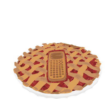 A festive sticker for Pi Day, featuring a delicious-looking pie with a calculator baked right into its lattice crust.