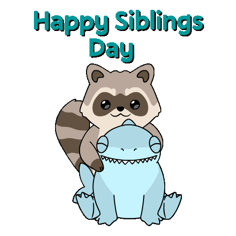 Celebrate Happy Siblings Day with this adorable sticker featuring a cute raccoon hugging a friendly land shark.