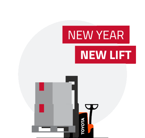Celebrate the New Year with a powerful Toyota forklift lifting boxes, featuring the 'New Year New Lift' slogan.
