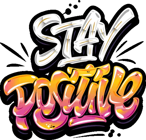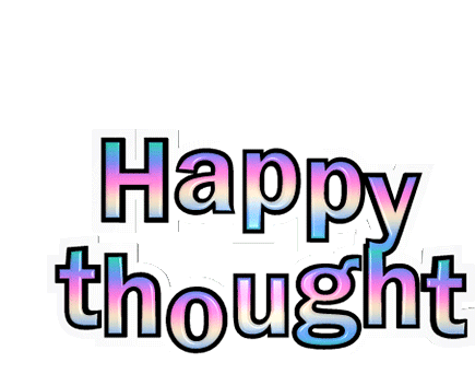 A vibrant animated sticker from Omer Studios featuring the text "Happy thought" with a colorful rainbow gradient fill.