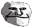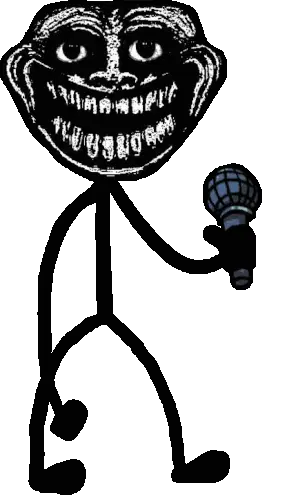 An animated, pixelated black and white Trollge meme, featuring the iconic Trollface with a widening smile, perfect for trolling.