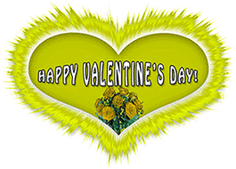 A vibrant animated sticker featuring a red heart with 'Happy Valentine's Day!' text and a bouquet of red roses.