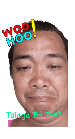 A man with a confused or sad expression, overlaid with 'WOO HOO!' and the Filipino phrase 'Talaga Ba Teh?' (Really, sis?).
