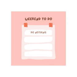A humorous animated sticker featuring a rotating pink cube with a 'Weekend To Do' list, where every item is 'Do Nothing'.