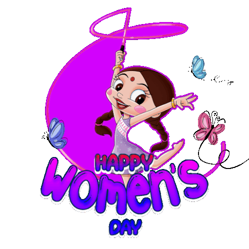 Chutki from Chhota Bheem celebrates Happy Women's Day with a joyful ribbon dance, surrounded by butterflies.