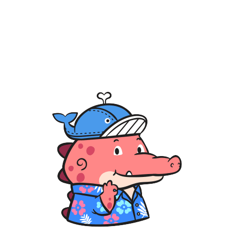 Cute Baby Gator in a whale hat and Hawaiian shirt happily gives an 'OK' gesture with a big smile.