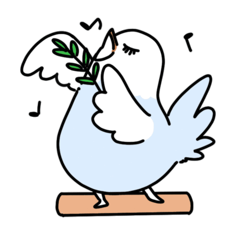 An animated sticker featuring a graceful white dove in flight, carrying an olive branch, symbolizing peace and harmony.