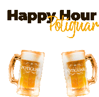 Animated sticker featuring 'Happy Hour Potiguar' text and two frosty beer mugs clinking together in celebration.