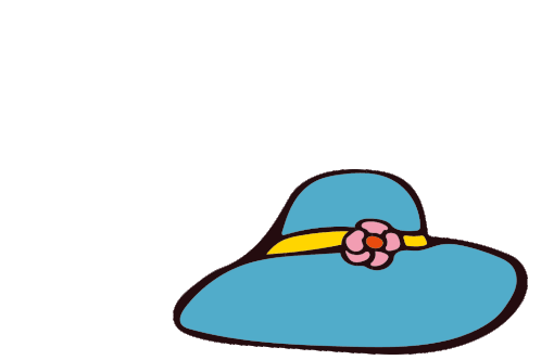 A charming sticker featuring a light blue wide-brimmed ladies' hat adorned with a yellow band and a pink flower.