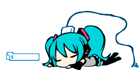 Hatsune Miku, tired and asleep, recharges her battery. Watch as the iconic vocaloid powers up.