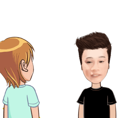 Hauzozo cartoon characters wave and high-five each other in a friendly greeting, featuring a superimposed real face.