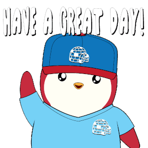 A cute cartoon penguin wearing a cap and shirt waves, wishing you to 'Have A Great Day!' with a cheerful smile.