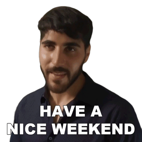 Rudy Ayoub smiles and wishes everyone a nice weekend with a friendly message overlay.
