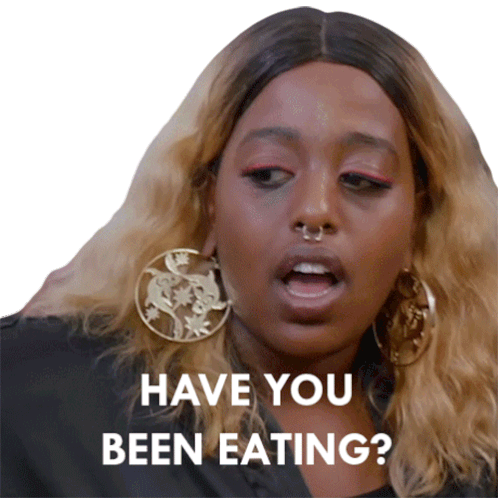 Amina, a woman with a nose ring, asks "HAVE YOU BEEN EATING?" with a concerned expression, showing care.