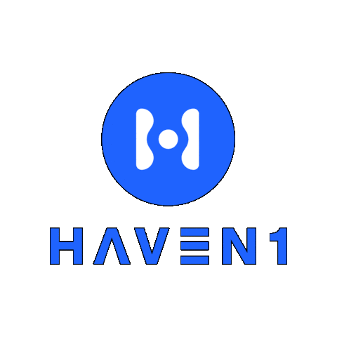Animated sticker featuring the Haven1 H1 crypto logo, a stylized white 'H' within a vibrant blue circle, with 'HAVEN1' text below.