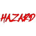 An animated sticker featuring the word "HAZARD" written in bold, vibrant pink letters.