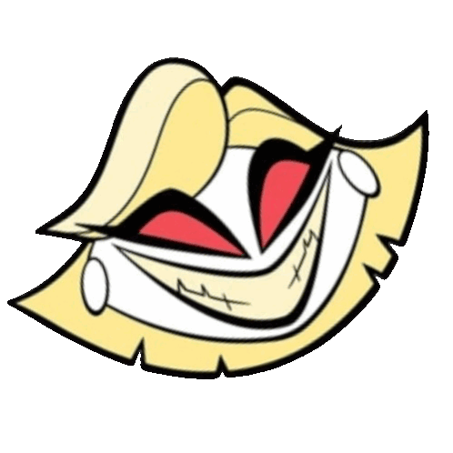 Hazbin Hotel's Katie Killjoy animated sticker, featuring her iconic wide, sinister smile and head rocking side to side.