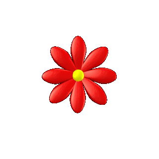 A vibrant red flower with a yellow center, symbolizing love and beauty, animated with gentle movement.