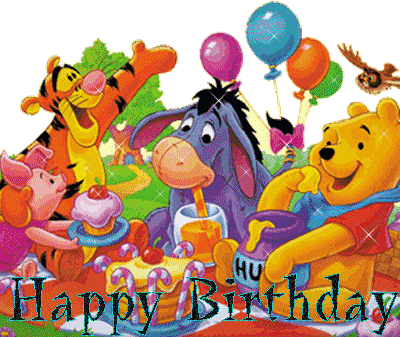 Celebrate with Winnie the Pooh, Tigger, Eeyore, and Piglet wishing a Happy Birthday. Perfect for any celebration!