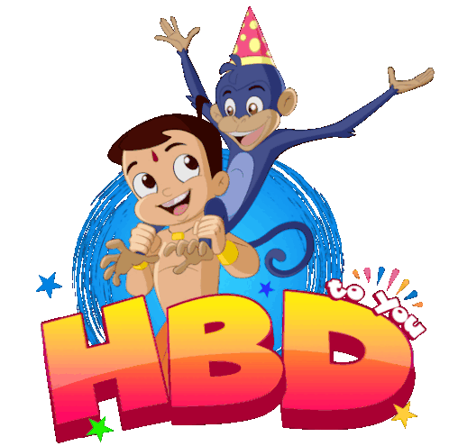 Chhota Bheem and Jaggu the monkey celebrate with a joyful 'HBD to You' birthday greeting sticker.
