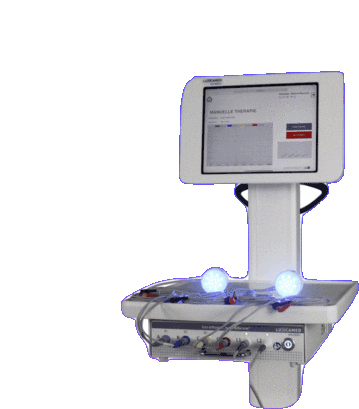 An animated sticker of the Luxxamed HD2000 medical therapy device with a screen displaying "MANUELLE THERAPIE".