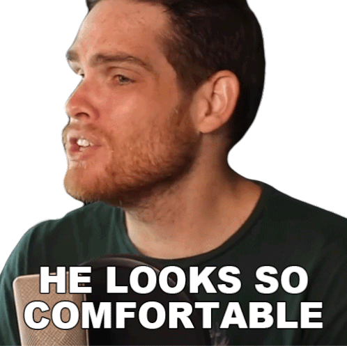 Sam Johnson appears incredibly comfortable and relaxed, expressing a feeling of ease and contentment.