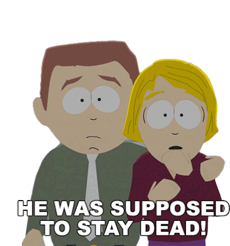 Linda Stotch cries to Stephen, exclaiming, "He was supposed to stay dead!" A dramatic South Park moment.