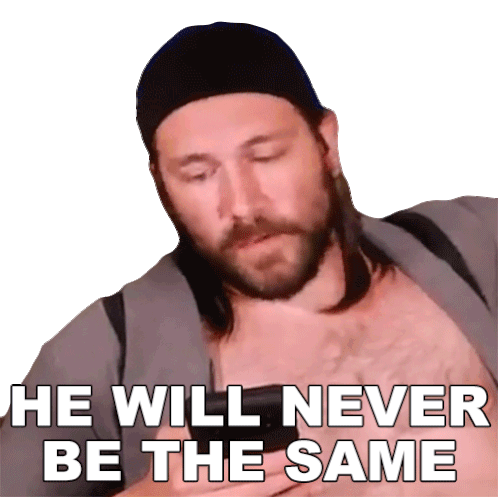 Michael Kupris looks down thoughtfully, with the impactful phrase 'He Will Never Be The Same' displayed below him.