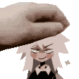 A gentle hand gives a comforting head pat to Oliver, the pixel art character from Fundamental Paper Education.
