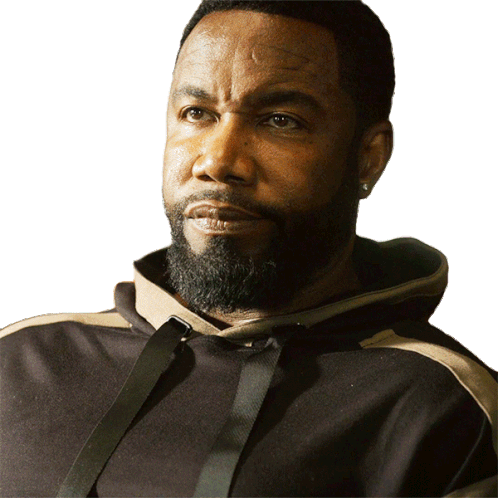 Julius Jones gives a subtle head shake, conveying 'no' or 'nope' with a serious, disapproving expression.
