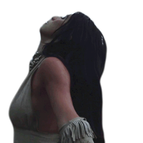 Kassi Ashton with her head tilted back, eyes closed, seemingly feeling the rain, captured in a serene moment.