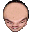 A distorted, bald head with a wide smile that appears to explode and reform in a funny animation.