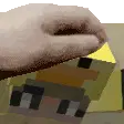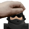 An adorable white bunny character happily receives a gentle headpat, closing its eyes in contentment.