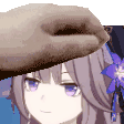 Herta from Zenless Zone Zero receives gentle headpats in this charming animated pixel art sticker.