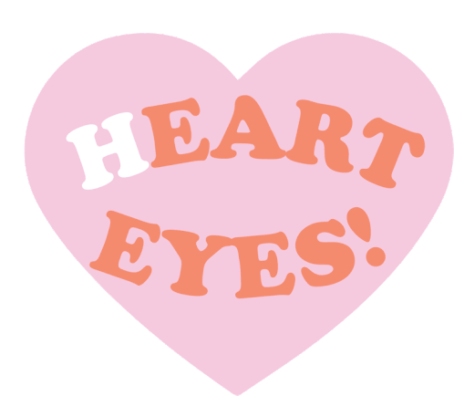 A vibrant pink heart sticker featuring the phrase 'HEART EYES!' in orange and white, perfect for expressing love and affection.
