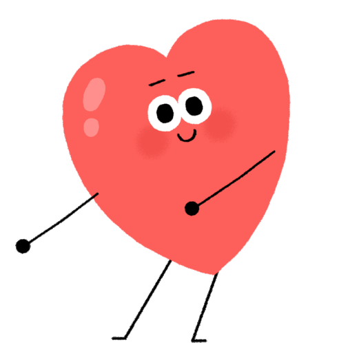 A cute animated heart character, designed by Mauro Gatti, performs the popular flossing dance move with enthusiasm.