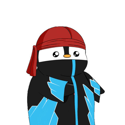 An animated Pudgy Penguin character shows love with a big red heart, perfect for expressing affection.