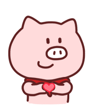 A cute pink cartoon pig with a friendly smile holds a vibrant red heart, expressing love and affection.