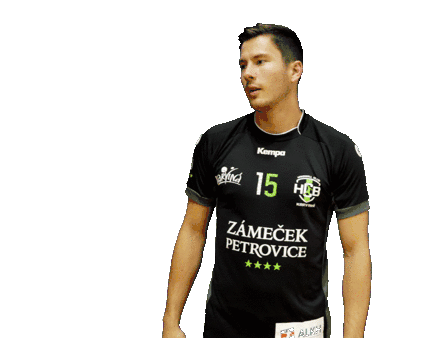 Athlete Patzel makes a heartfelt 'love you' gesture with his hands, smiling warmly in his team jersey.